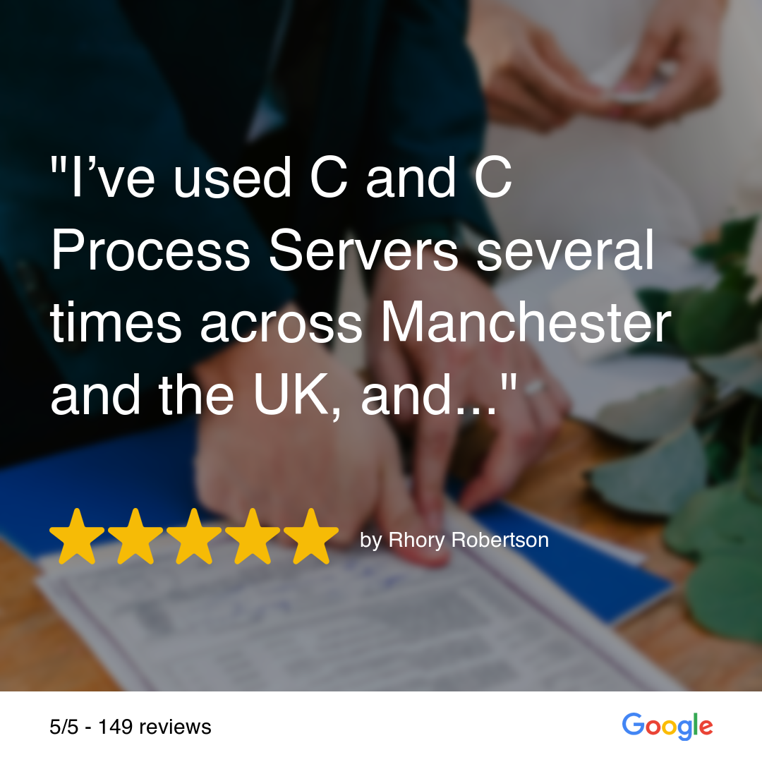 C & C Process Servers are a firm of process servers that are able to offer a fixed fee, Process Service based in Lancashire and cover the whole North West of England and have process servers covering Manchester and surrounding areas from £75.00 (No VAT).